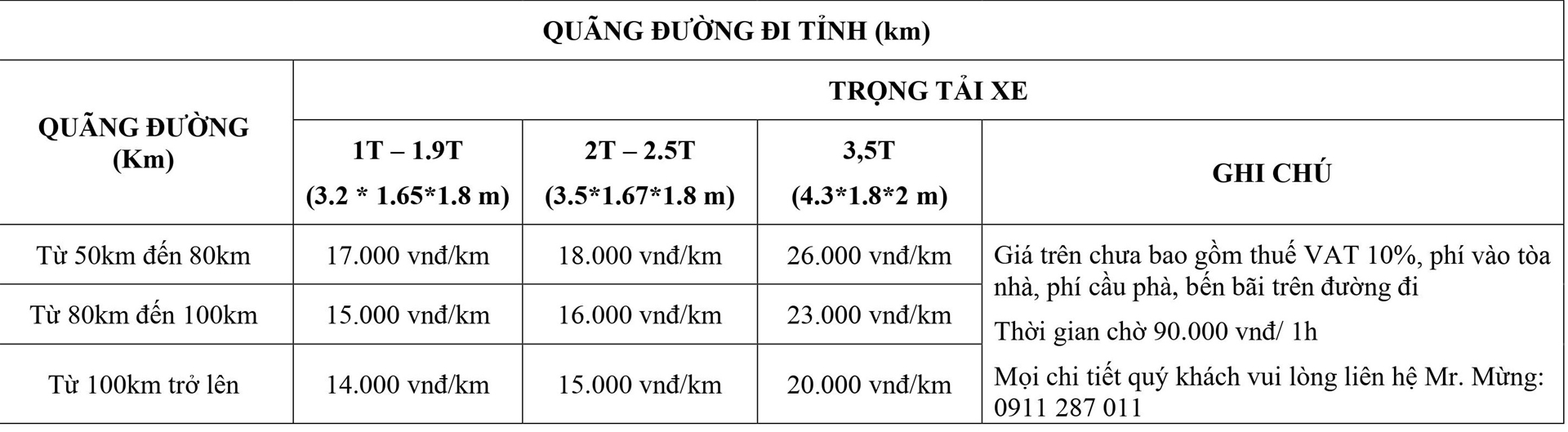 Xe tải vận chuyển hàng hóa, máy móc, thiết bị, xe tải chở hàng giá rẻ tại Hà Nội – với mức giá ổn định lâu dài, hơn nữa mỗi loại hàng sẽ được nhân viên chúng tôi nhận báo giá sau khi tính toán cụ thể khối lượng, thể tích hàng hóa vận chuyển phù hợp với từng tải trọng xe nên đảm bảo giá cước vận chuyển là thấp nhất. Hotline đặt xe: 0911287011 6, CAM KẾT VÀ LỢI ÍCH CỦA BẠN KHI DÙNG XE TẢI CHỞ HÀNG TỪ TP HÀ NỘI ĐI VSIP BẮC NINH Vận tải Nguyễn Lê đều mang đến cho khách hàng những lợi ích tuyệt vời nhất khi sử dụng dịch vụ của chúng tôi, do đó được ngày càng nhiều khách hàng tin dùng. Với dịch vụ vận chuyển bằng xe tải, taxi tải ở Hà Nội tính đến thời điểm hiện nay, 100% khách hàng sử dụng đều đánh giá cao. Bởi, vận tải Nguyễn Lê đáp ứng được các yếu tố và cam kết với khách hàng như sau: - Vận tải Nguyễn Lê có Dịch vụ đa dạng, đáp ứng đầy đủ nhu cầu của Quý khách. - Vận tải Nguyễn Lê có đội ngũ lái xe giàu kinh nghiệm, vững vàng, thông thạo đường TP Hà Nội và các tỉnh. Có đội ngũ nhân viên trẻ, chuyên nghiệp và tận tâm. Nhân viên luôn hỗ trợ khách hàng 24/7 đảm bảo giải đáp cho quý khách tận tình nhất. - Vận tải Nguyễn Lê có giá cạnh tranh hợp lý, đảm bảo an toàn cho hàng hóa, vận chuyển nhanh chóng, sẽ bồi thường 100% giá trị hàng hóa nếu hỏng hóc, mất mát trong quá trình vận chuyển - Vận tải Nguyễn Lê giao nhận hàng hóa tận nhà, tận nơi và nhiều địa điểm cho quý khách khi có yêu cầu - Thanh toán cước vận chuyển linh hoạt, có thể trước hoặc sau khi bạn sử dụng dịch vụ của Vận tải Nguyễn Lê. - Vận tải Nguyễn Lê có xuất hóa đơn VAT 08% cho khách hàng là công ty doanh nghiệp sau khi sử dụng các dịch vụ của chúng tôi. - Đảm bảo xe không bị cấm đường, cấm giờ, phục vụ Quý khách 24/24h, Kể cả các ngày lễ, tết. - Khi sử dụng dịch vụ của Nguyễn Lê, chúng tôi giúp công việc của bạn được thực hiện nhanh chóng, tiết kiệm thời gian nhất, chi phí rẻ nhất cho bạn. Mọi thông tin về dịch vụ quý khách hàng liên hệ với chúng tôi qua: Hotline: 0911287011 Website: http://xetaichohanghanoi.vn/ Bài viết liên quan: Dịch vụ vận chuyển hàng hóa bằng xe tải tại TP Hà Nội Dịch vụ vận chuyển hàng hóa bằng xe tải từ TP Hà Nội đi các tỉnh Dịch vụ vận chuyển hàng hóa bằng xe tải Hà Nội Quảng Ninh Dịch vụ vận chuyển hàng hóa bằng xe tải Hà Nội Vĩnh Phúc Dịch vụ vận chuyển hàng hóa bằng xe tải Hà Nội Bắc Ninh Dịch vụ vận chuyển hàng hóa bằng xe tải Hà Nội Hải Dương Dịch vụ vận chuyển hàng hóa bằng xe tải Hà Nội Hải Phòng Dịch vụ vận chuyển hàng hóa bằng xe tải Hà Nội Hưng Yên Dịch vụ vận chuyển hàng hóa bằng xe tải Hà Nội Thái Bình Dịch vụ vận chuyển hàng hóa bằng xe tải Hà Nội Hà Nam Dịch vụ vận chuyển hàng hóa bằng xe tải Hà Nội Nam Định Dịch vụ vận chuyển hàng hóa bằng xe tải Hà Nội Ninh Bình Dịch vụ vận chuyển hàng hóa bằng xe tải Hà Nội Hà Giang Dịch vụ vận chuyển hàng hóa bằng xe tải Hà Nội Cao Bằng Dịch vụ vận chuyển hàng hóa bằng xe tải Hà Nội Lào Cai Dịch vụ vận chuyển hàng hóa bằng xe tải Hà Nội Bắc Kạn Dịch vụ vận chuyển hàng hóa bằng xe tải Hà Nội Lạng Sơn Dịch vụ vận chuyển hàng hóa bằng xe tải Hà Nội Tuyên Quang Dịch vụ vận chuyển hàng hóa bằng xe tải Hà Nội Yên Bái Dịch vụ vận chuyển hàng hóa bằng xe tải Hà Nội Thái Nguyên Dịch vụ vận chuyển hàng hóa bằng xe tải Hà Nội Phú Thọ Dịch vụ vận chuyển hàng hóa bằng xe tải Hà Nội Bắc Giang Dịch vụ vận chuyển hàng hóa bằng xe tải Hà Nội Lai Châu Dịch vụ vận chuyển hàng hóa bằng xe tải Hà Nội Điện Biên Dịch vụ vận chuyển hàng hóa bằng xe tải Hà Nội Sơn La Dịch vụ vận chuyển hàng hóa bằng xe tải Hà Nội Hòa Bình Dịch vụ vận chuyển hàng hóa bằng xe tải Hà Nội Thanh Hóa Dịch vụ vận chuyển hàng hóa bằng xe tải Hà Nội Nghệ An Dịch vụ vận chuyển hàng hóa bằng xe tải Hà Nội Hà Tĩnh Dịch vụ vận chuyển hàng hóa bằng xe tải Hà Nội Quảng Bình Dịch vụ vận chuyển hàng hóa bằng xe tải Hà Nội Quảng Trị Dịch vụ vận chuyển hàng hóa bằng xe tải Hà Nội Thừa Thiên Huế. Dịch vụ vận chuyển hàng hóa bằng xe tải Hà Nội Đà Nẵng